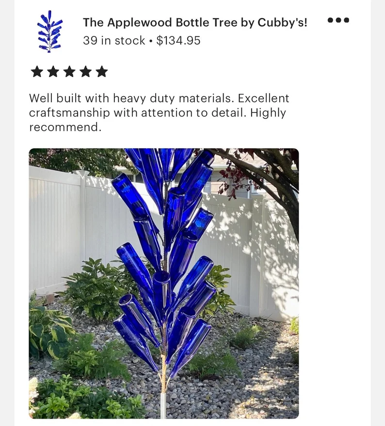 47 reviews for The Applewood Bottle Tree by Cubby’s!