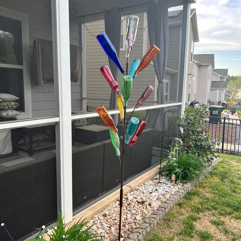 The bottle tree looks perfect in the yard. I didn’t realize I was buying the best. The item matched the description perfectly, it exceeded my expectations, and customer service was amazing. Definitely the best in the business!!