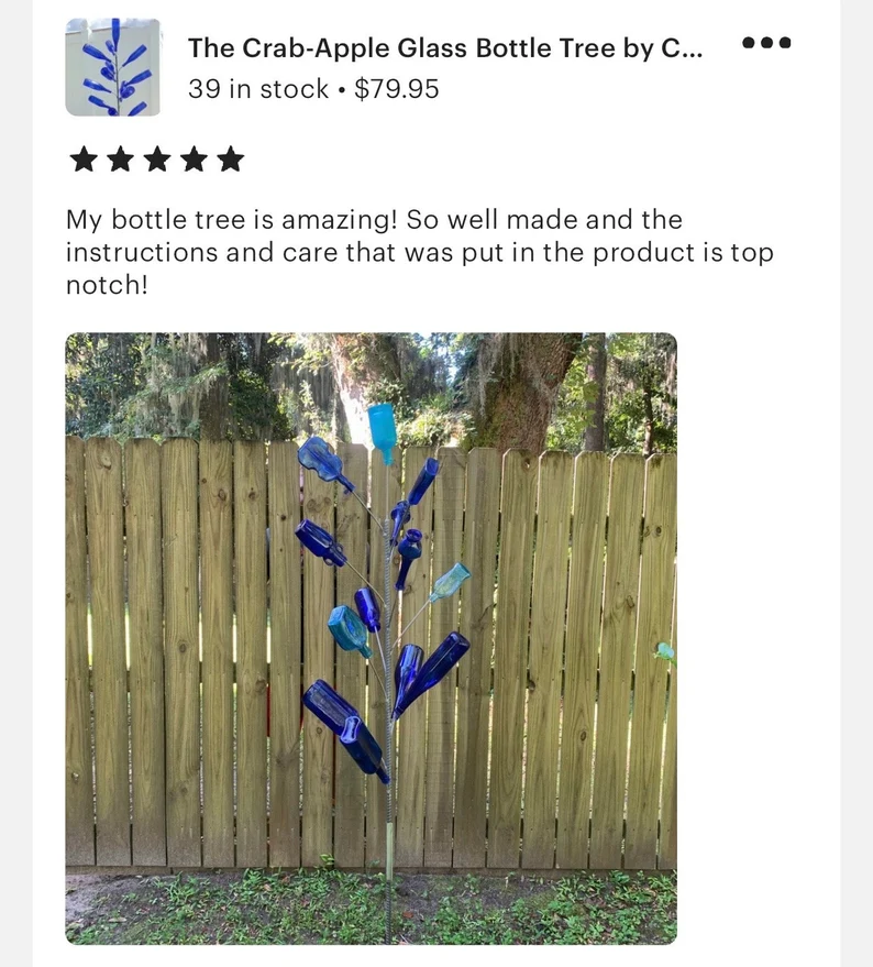 Love my Bottle tree!! It’s made of excellent quality and craftsmanship!