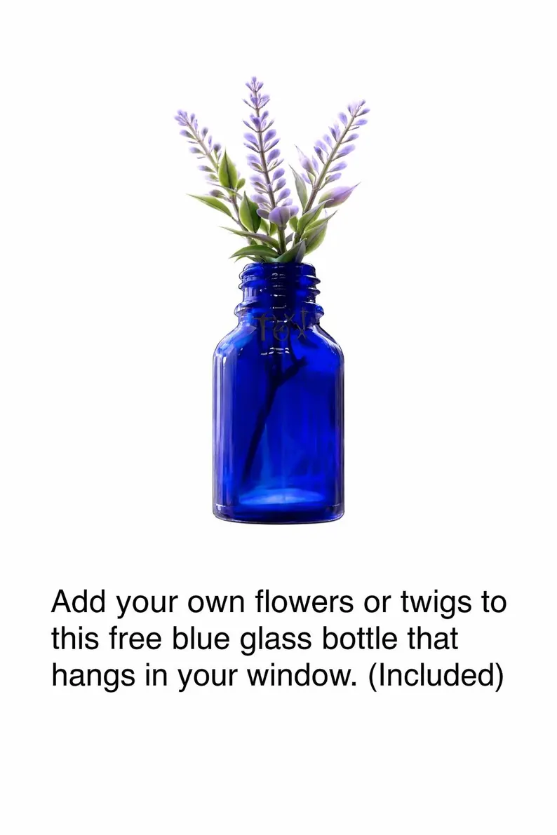Comes with my signature small hanging blue bottle (Real Glass) made to hang in your window to hold your small flowers or twigs! Without a twig holder, where do you keep you twigs?